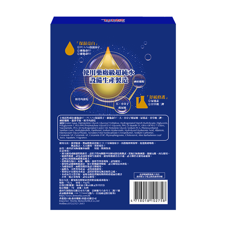 植萃角鯊烷、PCA-NA保濕因數, 有效瞬效鎖水、瞬效滋潤。